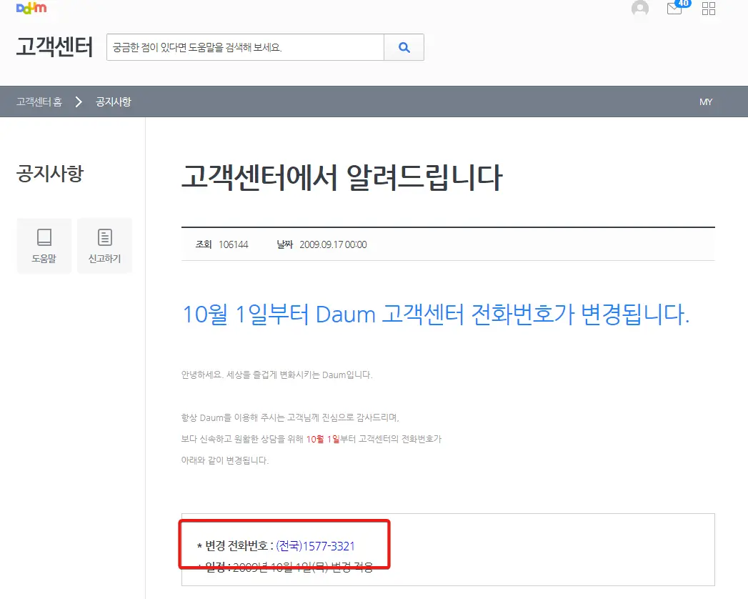 여기에 다음 고객센터의 운영시간은 평일 오전 9시부터 오후 6시라고 하는데요. 주말이나 공휴일에는 운영을 하지 않으므로, 그런 경우는 다음메일 고객센터의 홈페이지를 방문하여 문의사항을 확인하시는게 좋습니다.