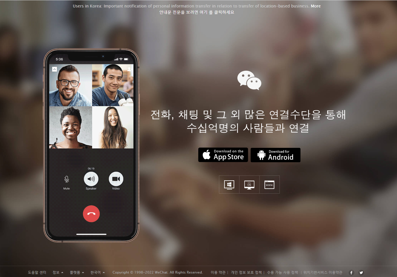 국내에서도 한국어를 제공하여 쉽게 웹페이지로써 확인 가능한 위챗 홈페이지입니다. 검색을 통하여 쉽게 찾으실 수 있으며, 여기에서 프로그램 받기가 가능합니다.
