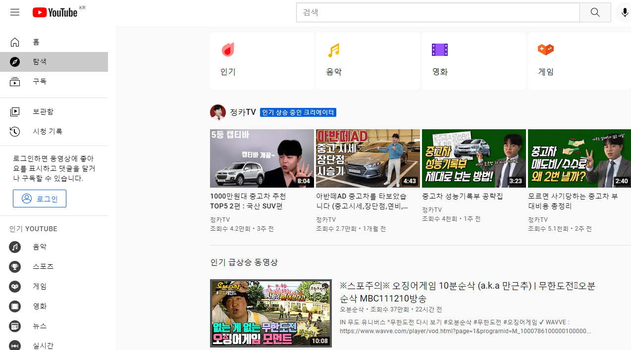 가장 먼저 PC에서는 유튜브 홈페이지 바로가기 방법으로써 도메인 주소를 통하여 접근이 가능합니다. youtube.com을 통하여 인터넷 주소창에 넣어주시면 됩니다. 어느 브라우저에서든 가볍게 들어갈 수 있는 방법인데요.