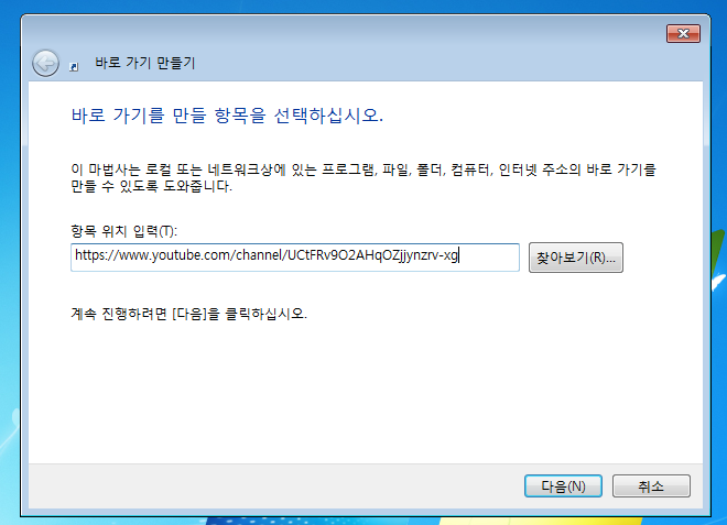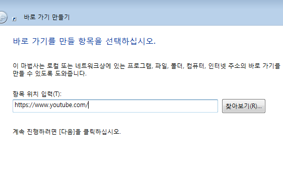 그래서 유튜브 바로가기 만들기를 이용하여 바탕화면에 바로가기 아이콘을 생성하는 방식을 많이 활용합니다. 이 방식은 항목 위치 입력과 이름을 지정해두면 되는데요.
