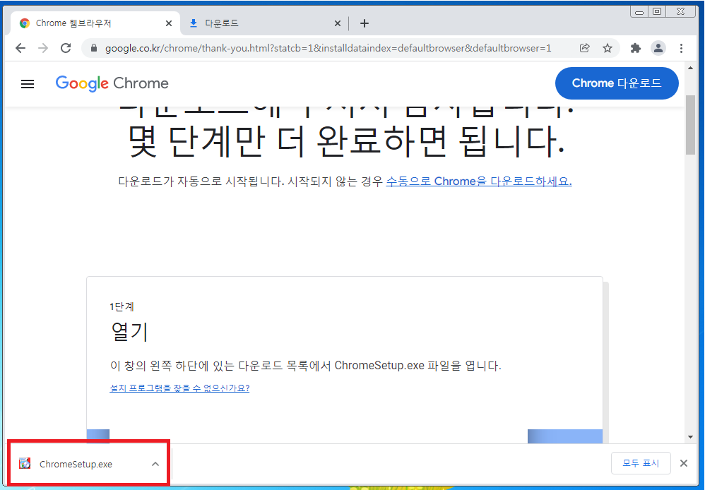 설치파일을 다운 받으셨으면 실행을 시켜서 바로 자신의 컴퓨터에서 크롬의 설치를 진행시키실 수 있습니다. 온라인에서도 설명이 되었다싶이 열기 - 허용 - 설치의 과정을 거치시면 됩니다.