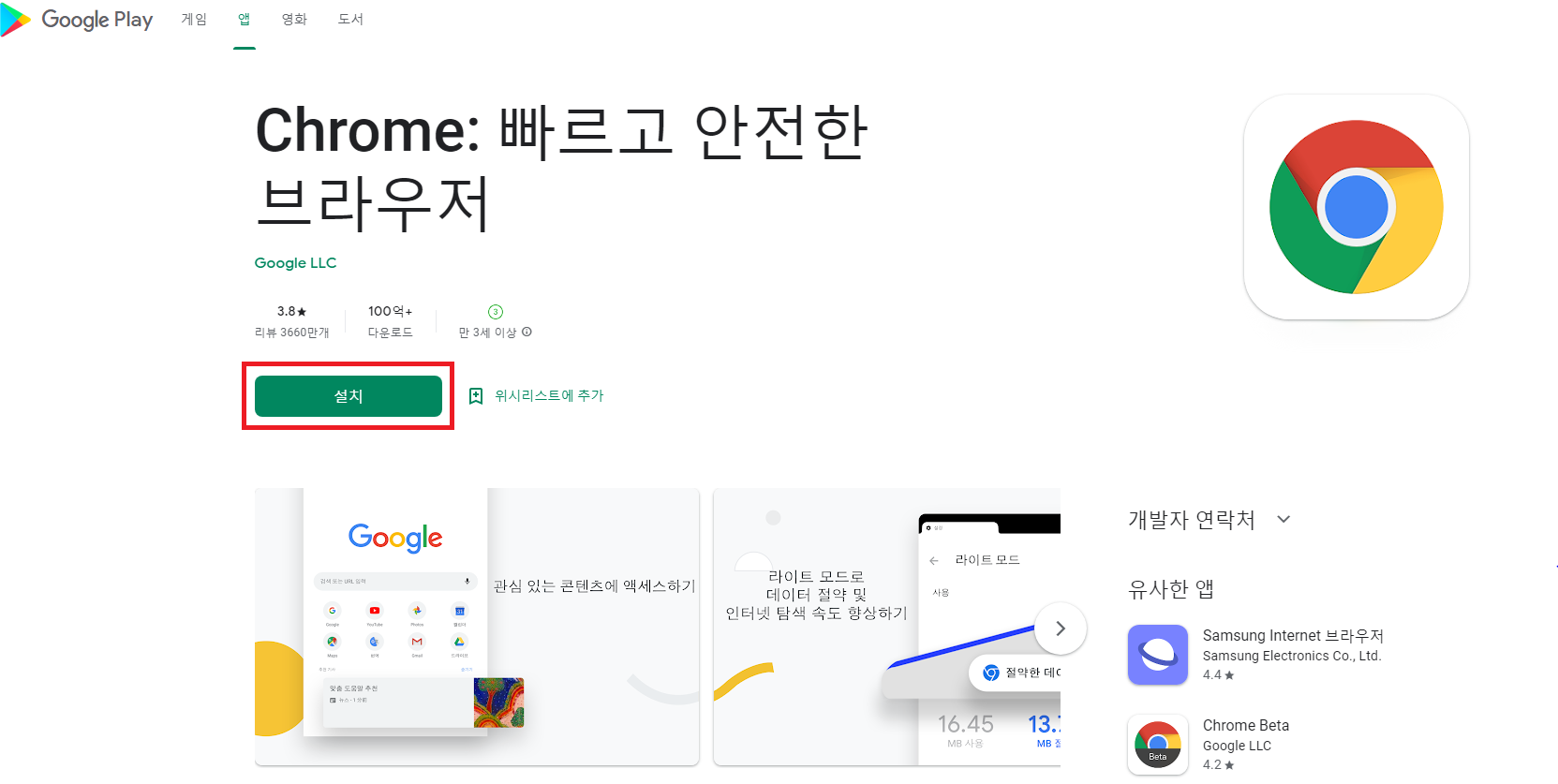 추가적으로 모바일에서는 이용이 가능합니다. 다만 삼성에서 사용을 하는 갤럭시 스마트폰이나 태블릿은 안드로이드계열인데요. 크롬과 같은 구글에서 개발이 진행되어서 그런지 브라우저가 기본 탑재되어 추가 설치를 할 필요는 없습니다.